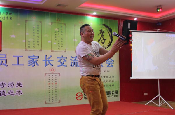 在此次活動中,安邦員工還為家長們帶來精心準備的節(jié)目。《母親》、《父親的草原、母親的河》、《父親》等大家熟悉的經(jīng)典老歌,唱出了兒女對父母親表達的感激之情;動感歌舞《精武門》唱嗨了全場,贏得大家陣陣掌聲;一首手語歌《感恩的心》感人肺腑,感恩父母給我們生命、感謝社會給我們以歷練、感謝企業(yè)給我們展示的平臺。來自東北的二人轉演員楊杰模仿能力超強,趙本山、單田芳、劉能、趙四模仿的真是惟妙惟肖,贏的笑聲一片、掌聲不斷。