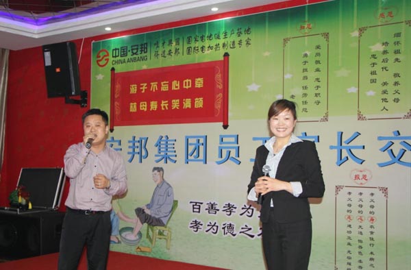 集團董事長李貽連首先致開場辭,他表示:“孝文化是安邦集團的核心企業(yè)文化,希望通過此次家長交流會,讓員工家長了解其子女的工作,展示公司的特色和風采,激勵廣大員工奮發(fā)向上。”