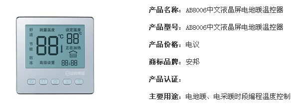 發(fā)熱電纜電地暖是當下最為流行的電地暖,也是未來電地暖的主流。在發(fā)熱電纜電地暖系統(tǒng)中,除了大家最為關注的發(fā)熱電纜本身外,值得用戶關心的還有溫控器。發(fā)熱電纜電地暖,其中心控制就是由通過溫控器來實現(xiàn)的。利用溫控器來發(fā)出各種指令、設置室內溫度。那么,溫控器的選擇和使用有些什么講究,要避免哪些誤區(qū)呢?下面,安邦電地暖的小編為大家分享智能溫控器的選擇和使用心得。